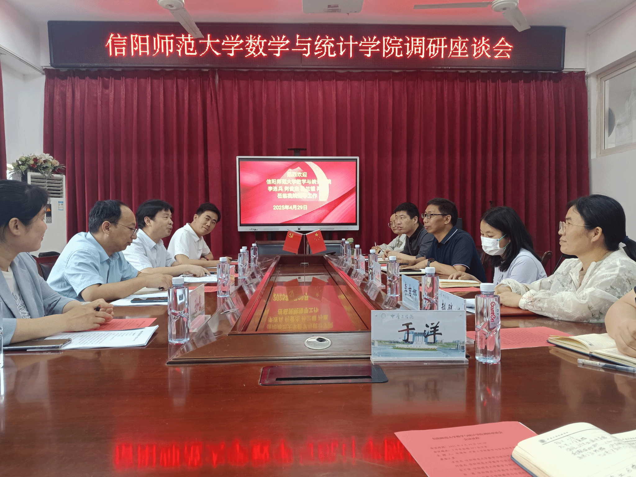 2025年4月29日下午,信阳师范大学数学与统计学院副院长李连兵、何俊杰一行4人到访我院并进行调研座谈。座谈会在2号实验楼343举行,由伟德betvlctor1946源于英国副院长张建林主持,学院数学与应用数学、信息与计算科学,数据计算及应用专业教研室负责人,教学办负责人等参加了会议。