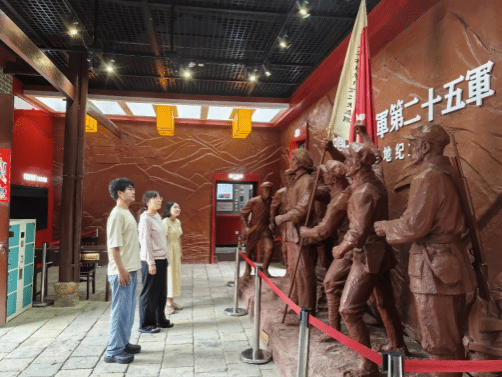 在何家冲革命旧址,大家怀着崇敬的心情参观了“何氏祠”纪念馆。通过详实的史料和珍贵的文物,同志们深入了解了红二十五军在何家冲的革命历程和长征路上的英雄事迹。一幅幅历史照片、一件件革命文物,生动再现了那段艰苦卓绝、浴血奋战的峥嵘岁月,让在场的每一位党员都深切感受到革命先辈们不怕牺牲、英勇斗争的崇高精神。系主任李吉娜说,当年红军战士在极端艰苦的条件下创造了奇迹,作为新时代党员教师,我们更要在教书育人的‘长征路’上勇担重任。