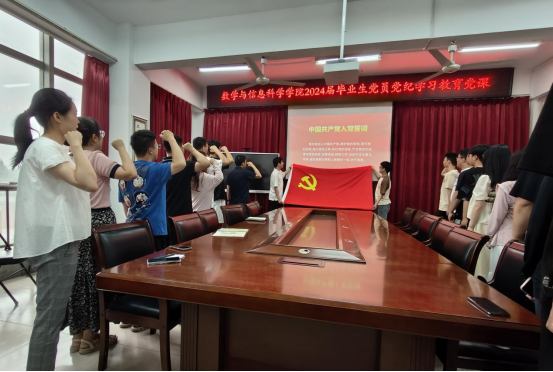 最后,杨向宇带领所有毕业生党员重温入党誓词。铿锵恢宏的誓词,强烈震撼着在场的每一位党员,一字一句,神圣而豪迈,体现了全体党员对中国共产党的无限忠诚。
