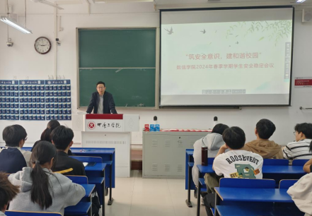 4月9日下午,数信学院在三号教学楼122召开了“筑安全意识,建和谐校园”2024年春季学期学生安全稳定会议。学院党总支副书记杨向宇、本科和硕士生全体宿舍长、班长参加会议。学工办副主任陈婷主持会议。