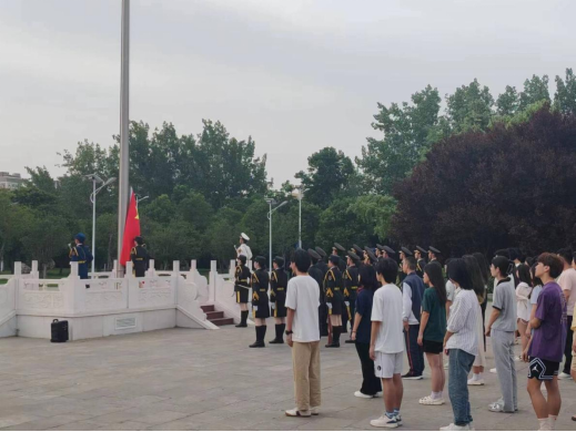 早7时,清晨的阳光洒满大地,国旗护卫队成员迈着铿锵有力的步伐,整齐划一地走向国旗台。随着雄壮的国歌声响起,五星红旗缓缓升起,全体师生肃穆致敬行注目礼、高唱国歌,寄托着对祖国无限的热爱和崇高的敬意。