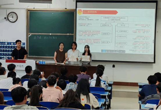 大会第一项,学院团委副书记张瑞楠讲授团委第一课。她首先向新生们传递了深切的关怀,鼓励新生们珍惜大学时光,激励每一位新生在大学期间严于律己,健康成长。在完成学业任务的同时,积极参加课外活动,争做新时代德智体美劳全面发展的时代新人。