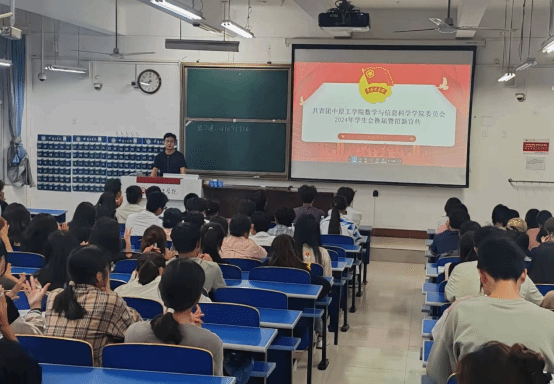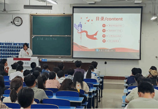 为进一步加强学生会骨干队伍建设,培养品学兼优、德才兼备的高素质学生骨干队伍,更好地服务于学院师生,确保学院学生工作平稳有序地进行,9月24日,数信学院团委2024年学生会换届暨招新大会顺利召开。学院团委副书记、24级新生辅导员张瑞楠老师,学院兼职辅导员、兼职团委副书记冷亚珂,全体学生会成员和24级新生参加大会,大会由冷亚珂主持。