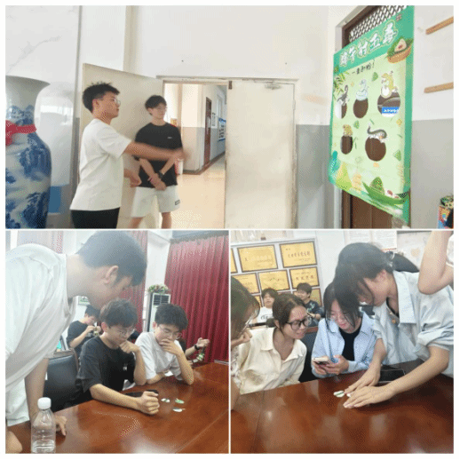 本次主题活动精心设计了三大趣味环节:端午射五毒、端午文化竹编与趣味24点游戏。手工竹编制作区域,同学们充分发挥创造力,在国家级非物质文化遗产竹编技艺的体验中,大家不仅亲手制作出寓意“节节高升、坚韧平安”的精美竹编成品,更深刻感受到了传统手工艺的独特魅力与深远价值。射击五毒挑战区更是热闹非凡,同学们分组合作,瞄准带有“五毒”图案的洞口进行射击,寓意驱邪避害、祈求平安。趣味24点游戏则是将传统文化与趣味思维游戏完美结合。同学们分组抽取4个不同的数字,争分夺秒地进行计算挑战。过程中,大家思维活跃,竞争激烈,现场气氛热烈而兴奋。