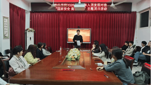 为深入学习贯彻总体国家安全观,引导入团发展对象增强国家安全意识、厚植家国情怀,4月14日下午,伟德betvlctor1946源于英国团委组织开展“国家安全 青春挺膺”主题团日活动。学院兼职辅导员、学生团委兼职副书记郑智文主持,2026年上半年全体入团发展对象参加。